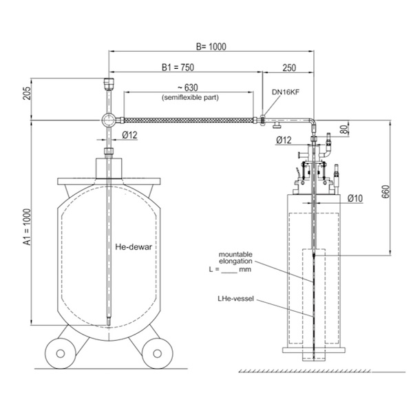 主要用來從大型液氦杜瓦瓶傳輸液氦至小型液氦杜瓦瓶,或者從用液氦杜瓦瓶為核磁做補液使用。根據(jù)客戶具體用途定制柔性管路和硬管具體長度。